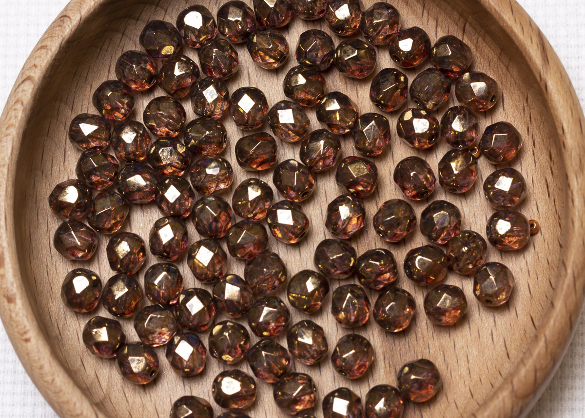 Бусины полированные круглые 6мм 25г (90 штук) 00030/15695 аметист прозрачный, бронзовое сияние