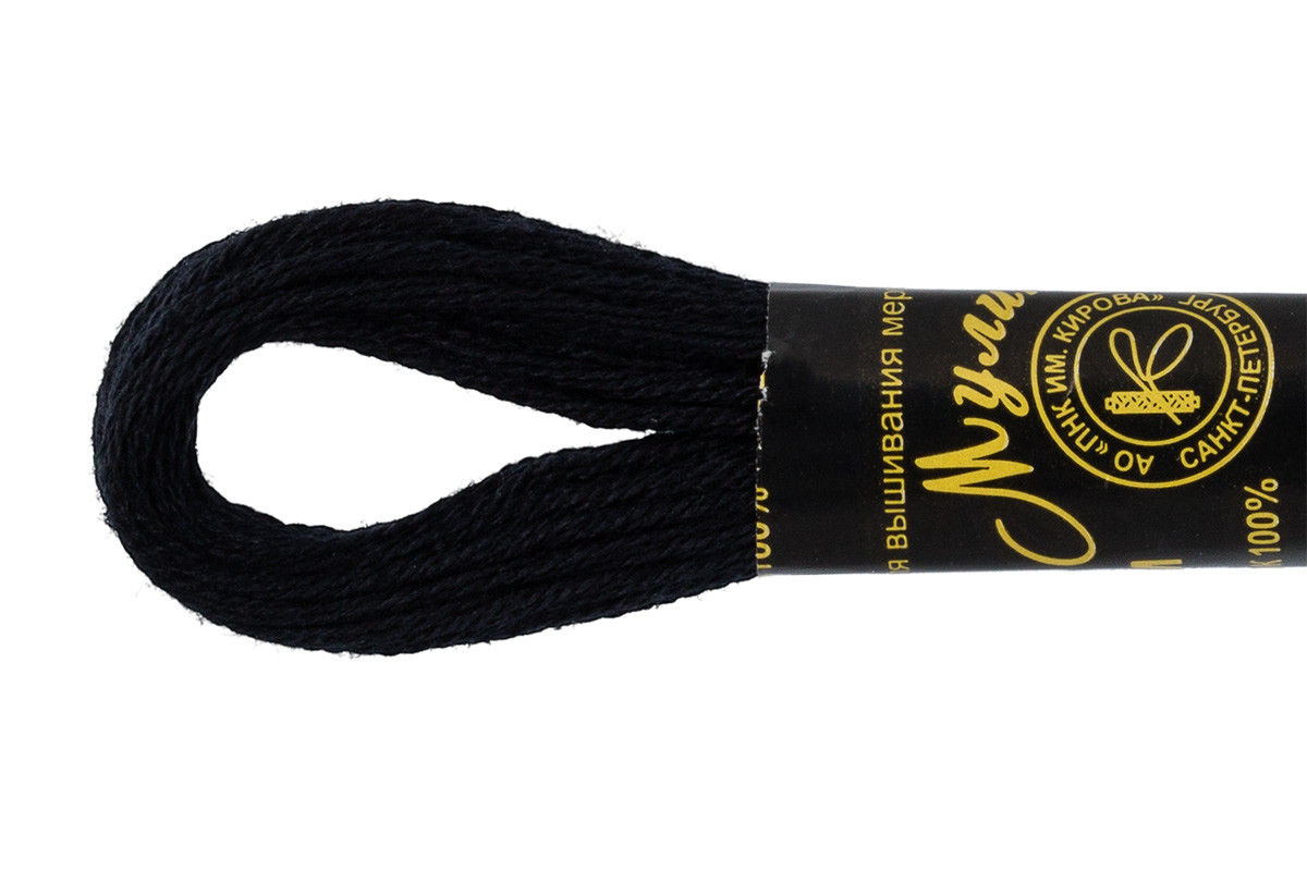 Нитки для вышивания "ПНК им. Кирова" мулине 100% мерсеризованный хлопок 8 м №7214 (156) ЧЕРНЫЙ