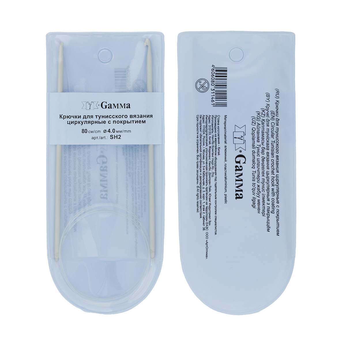Для вязания " Gamma" SH2 крючки для вязания циркулярные алюминий d 4. 0 мм 80 см в чехле .